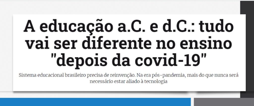 “O impacto não será homogêneo, mas todas as instituições evoluirão, aprendendo umas com as outras, com projetos coincidentes em muitas dimensões, mas com ênfases diferentes, de acordo com os valores e públicos que atendam. No Ensino Superior o impacto será muito mais profundo.” (grifei)